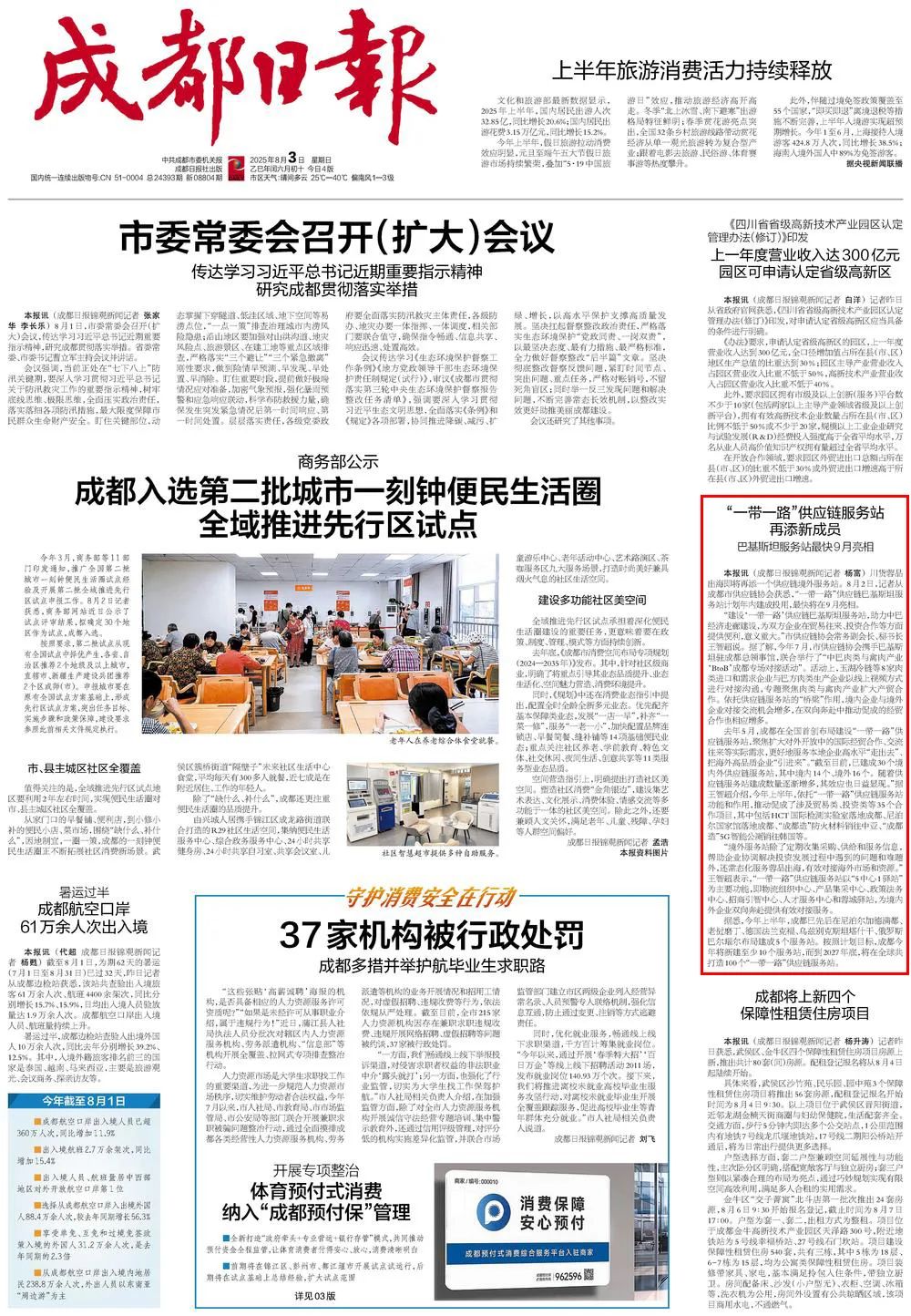 据悉,今年上半年,成都已先后在尼泊尔加德满都、老挝磨丁、德国法兰克福、乌兹别克斯坦塔什干、俄罗斯巴尔瑙尔布局建成5个服务站。按照计划目标,成都今年将新建至少10个服务站,而到2027年底,将在全球共打造100个“一带一路”供应链服务站。