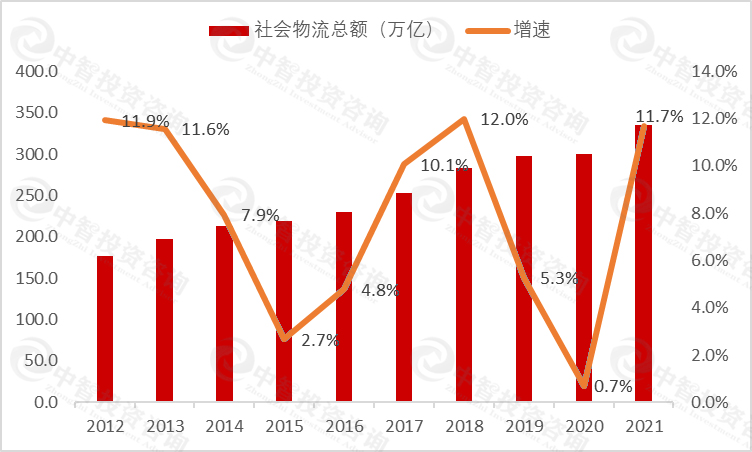 2021年我国实现社会物流总额335.2万亿元,从2012年-2021年社会物流总额每年保持10%的增长速度,这标志着我国物流业未来仍然有巨大的上升空间,将保持增长态势;2022年1月-10月我国物流业景气指数平均值低于50%,2021年到2022年每月物流业景气指数保持下降态势,反映我国物流业目前处于经济收缩态势;我国社会物流总额保持高速增长,物流业景气指数收缩,这预示着我国物流业发展正在从高速增长阶段向高质量发展进行转变。
