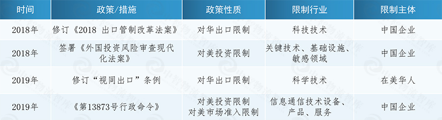 表1 特朗普首任期内对华出口和投资限制主要政策