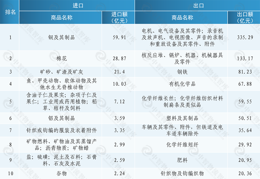 2024年1-10月中国-巴基斯坦TOP10进出口品类及金额