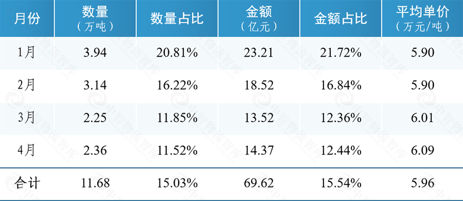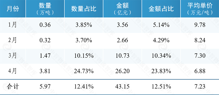 2025年1-4月我国出口美国未锻轧铜及铜材情况