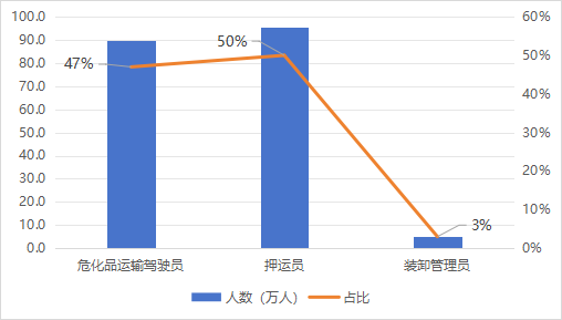 从市场主体维度观察,2024年危化品道路运输领域呈现多维度稳健发展态势——行业市场主体规模保持稳步扩张,约1.5万家企业从事危化品运输行业;运输装备能力同步提升,危化品运输车辆总数增至约44万辆,较上年同比增长3.5%;从业人员结构呈现专业化、梯队化特征,形成“驾驶主导-押运监管-装卸保障”的黄金配比体系。