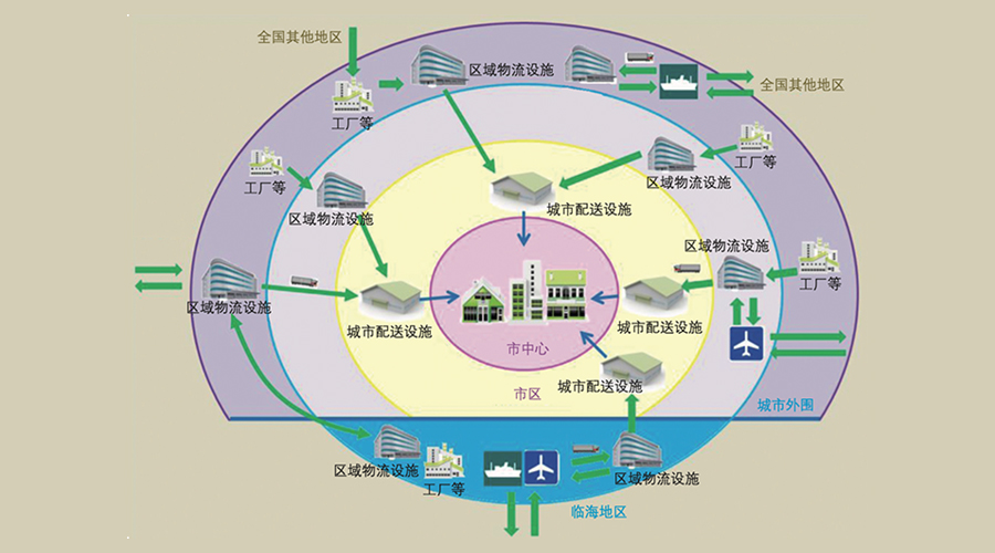 东京都市圈通过物流调查更加清晰地掌握了物流活动的组织模式,为了有效引导物流设施的合理布局,将物流设施划分为三级:区域物流设施、城市配送设施和末端送货点。